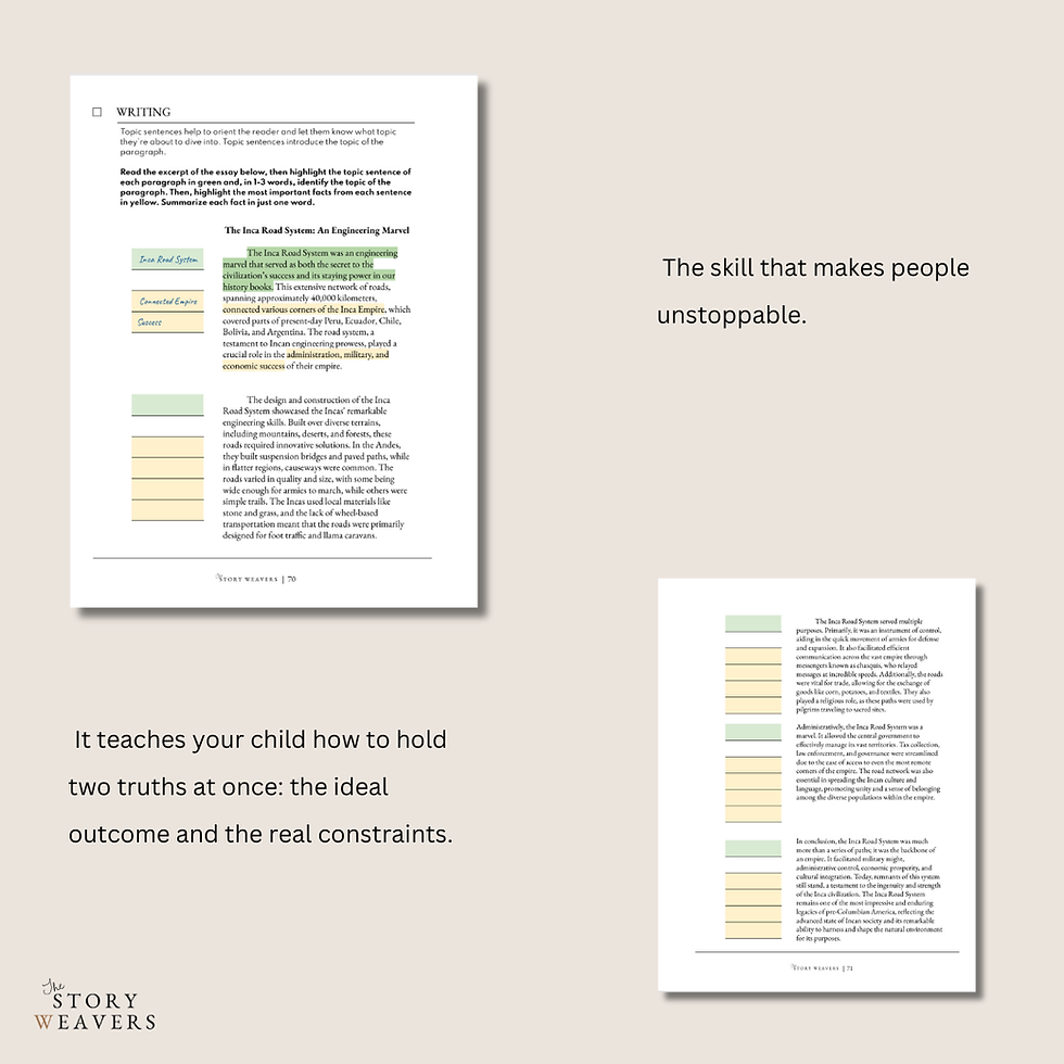 Story Weavers writing pages do something rare: they teach kids how to hold an idea steady while building it sentence by sentence. This is the kind of cognitive endurance strong writers and clear thinkers rely on every day — choosing what matters, structuring it, and communicating it so someone else can understand.